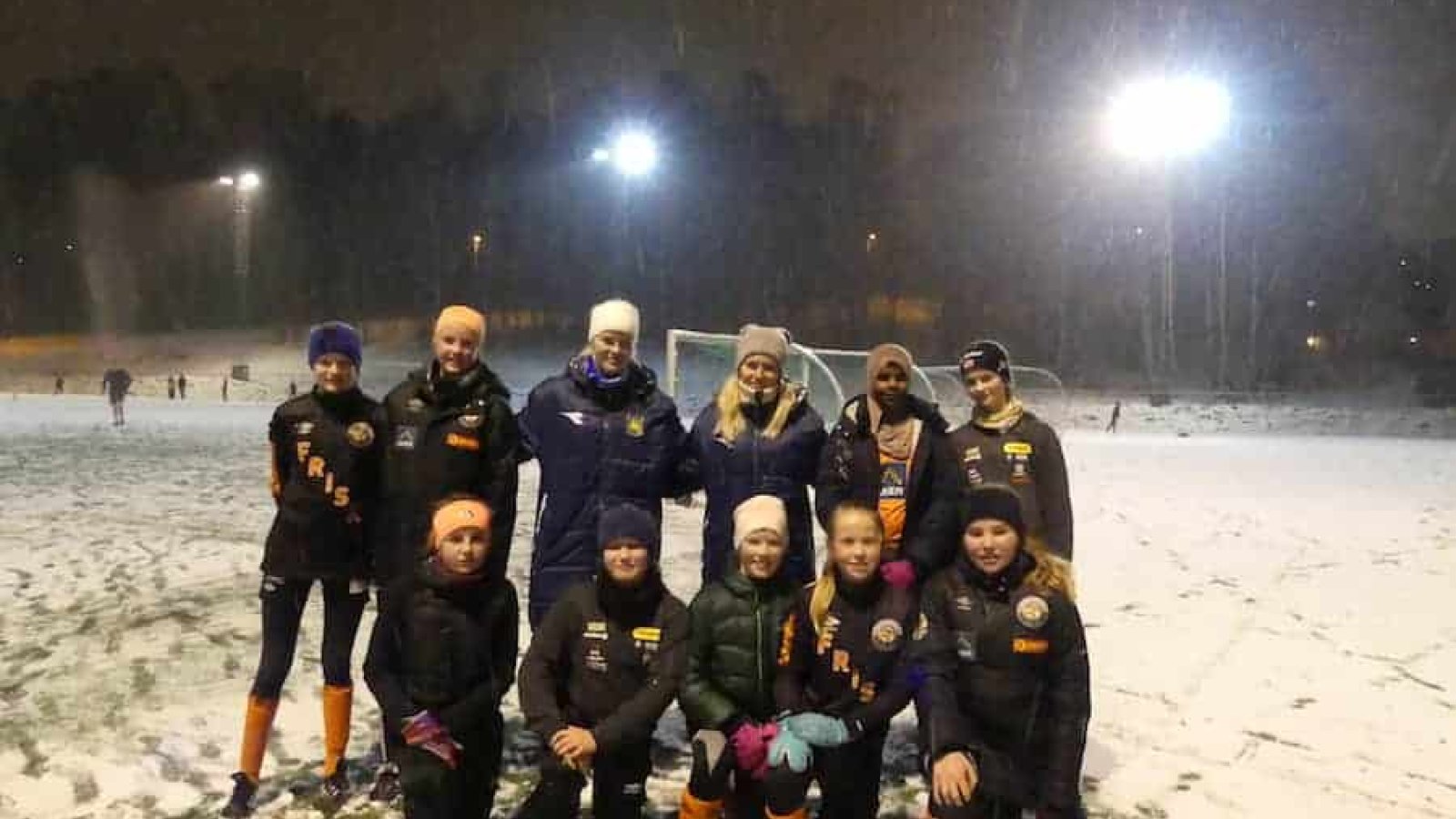 Snøen den lavet ned, og fotballskoene ble glattere og glattere. Det la ingen demper på tirsdagens kveldstrening for Frisk J06, hvor de fikk besøk fra Toppserien.