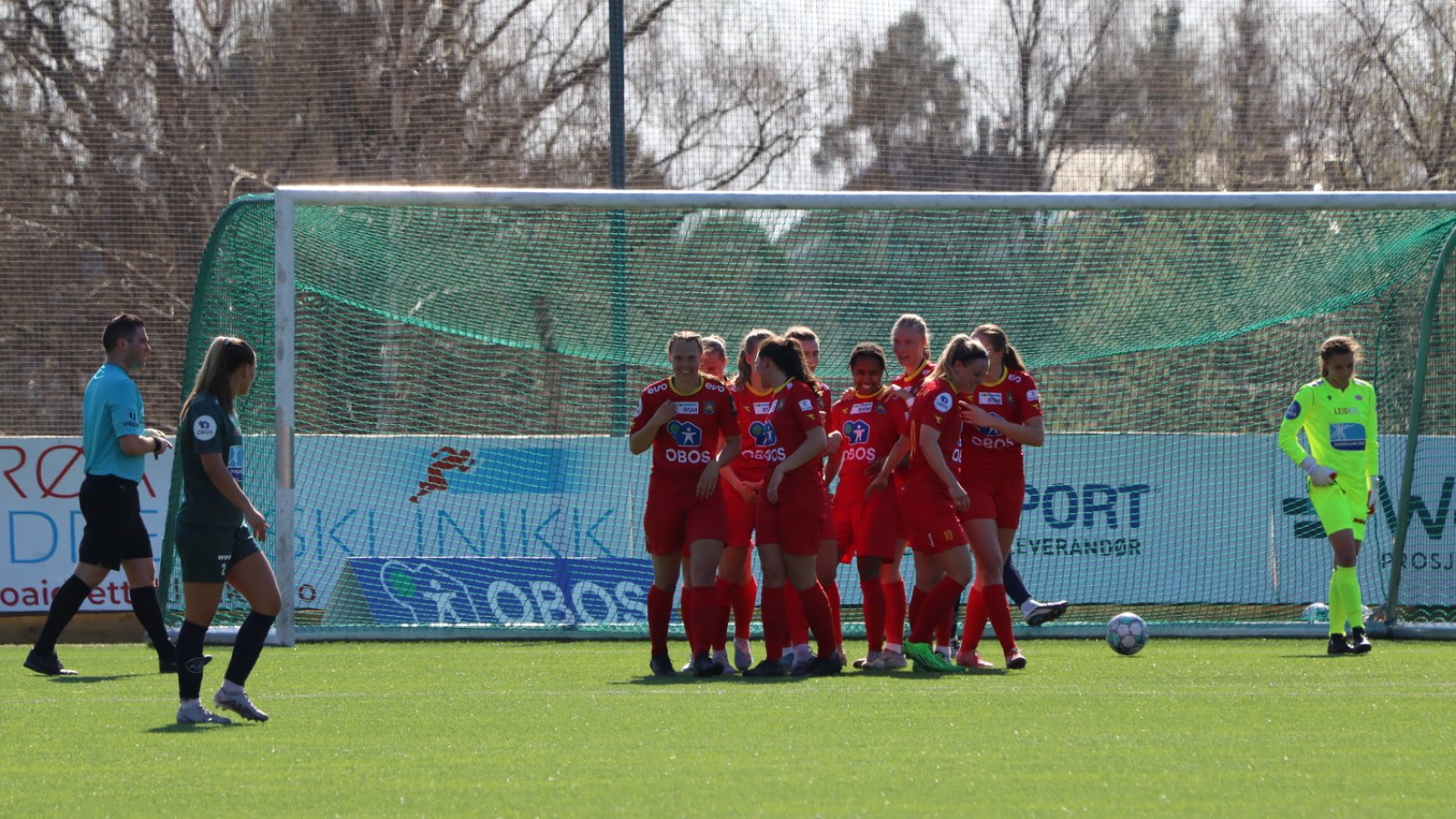 Vi fortsetter å spille bra og presse. I det 17. spillerminuttet får vi uttelling. Synne slår en corner som kommer i retur tilbake igjen til Synne. Hun slår inn påny. Der er Anya så godt som udekket foran mål – hun header ballen kontant i mål.